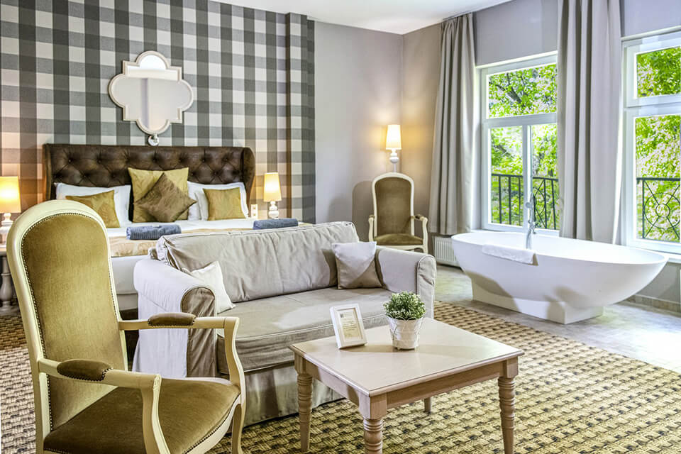 Mintha belecsöppenne egy vidéki angol kúria életébe; vagy mintha egy modernebb eleganciával berendezett kastélyba lépne: ilyen érzése lesz, amikor a szobakártyával a kezében benyit a kiválasztott szobába. Minden szoba minőségi, prémiumkategóriás valamint mindehhez társuló gyerek és bababarát felszereltsége is egyedülálló hazai viszonylatban.